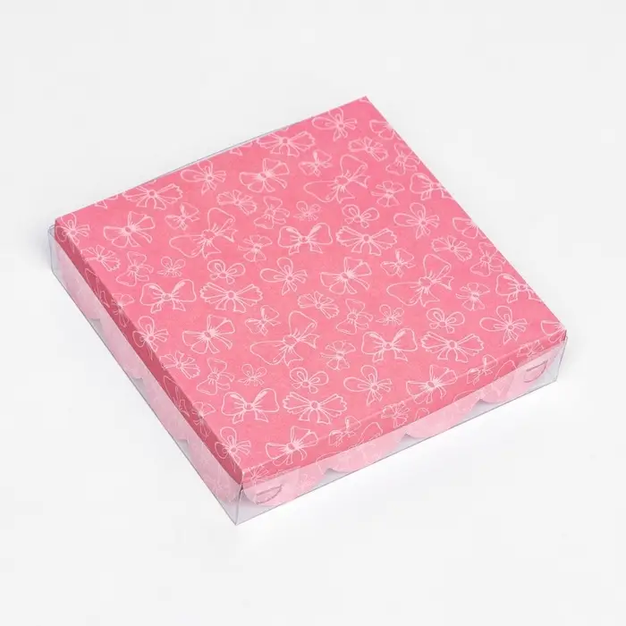Коробка для печенья с прозрачной крышкой - удобное и стильное решение для упаковки и демонстрации свежих печенек. Прозрачная крышка позволяет видеть аппетитное содержимое, делая печенье еще более заманчивым. Эта коробка прекрасно подходит для подарков, продажи или для хранения домашних угощений, добавляя им привлекательности и сохраняя их свежесть.