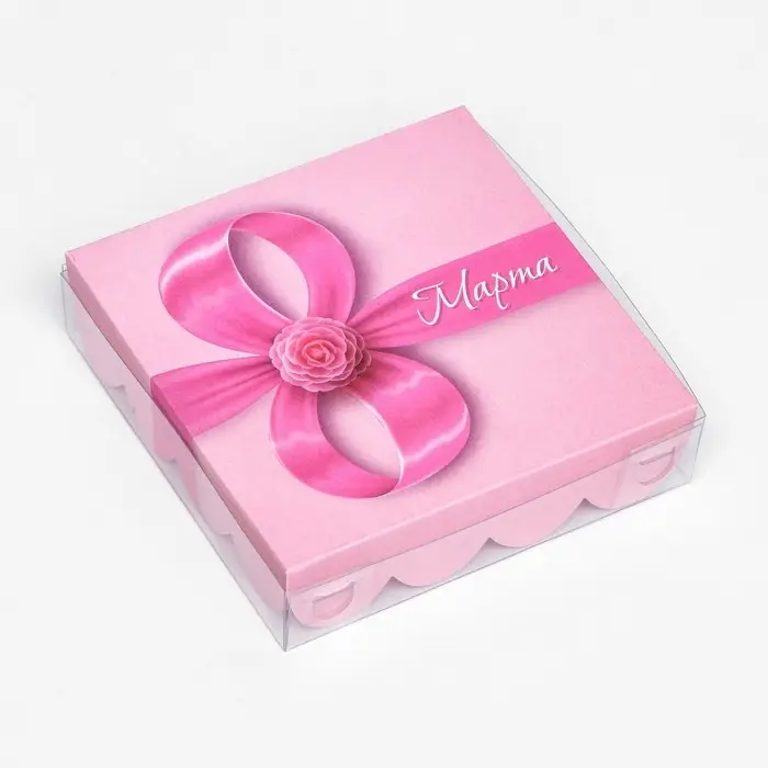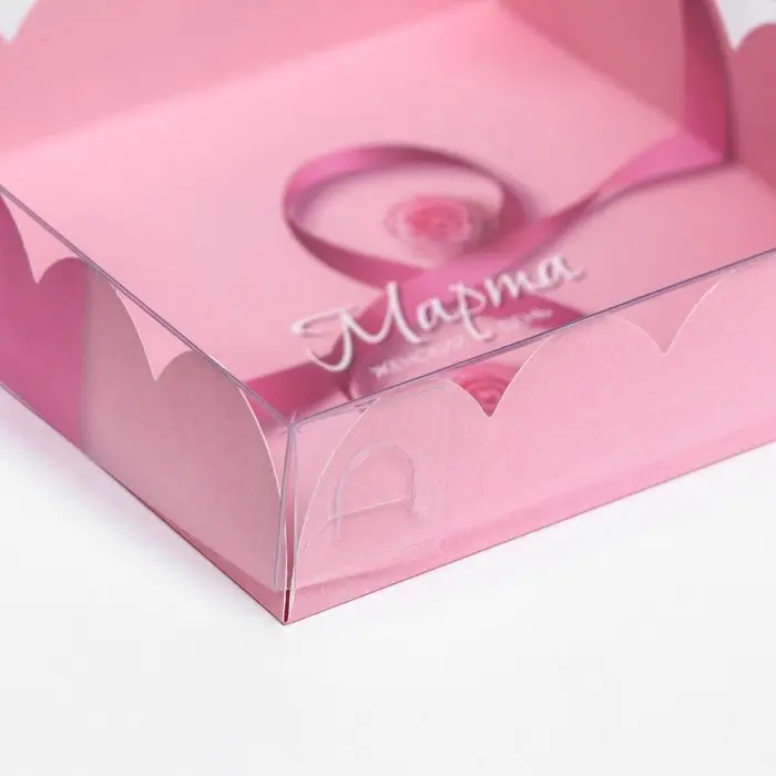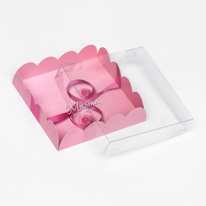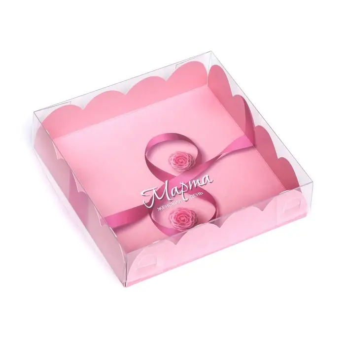 Коробка для печенья, кондитерская упаковка с PVC крышкой, «8 марта», 21 х 21 х 3 см