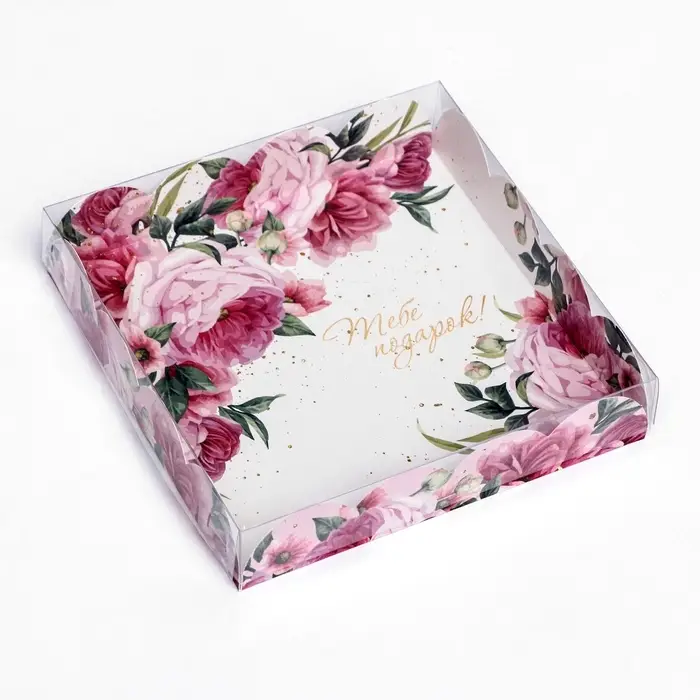 Коробка для печенья, кондитерская упаковка с PVC крышкой, «8 марта», 21 х 21 х 3 см