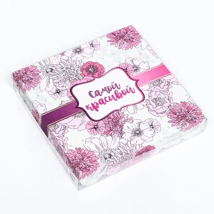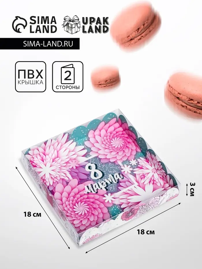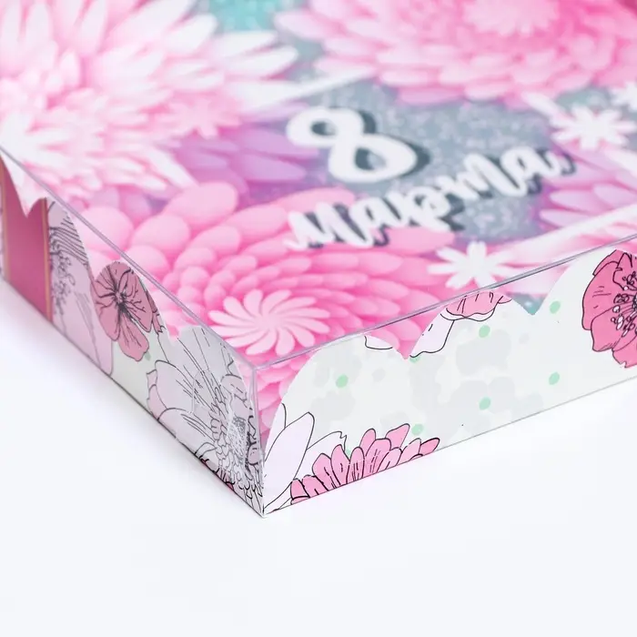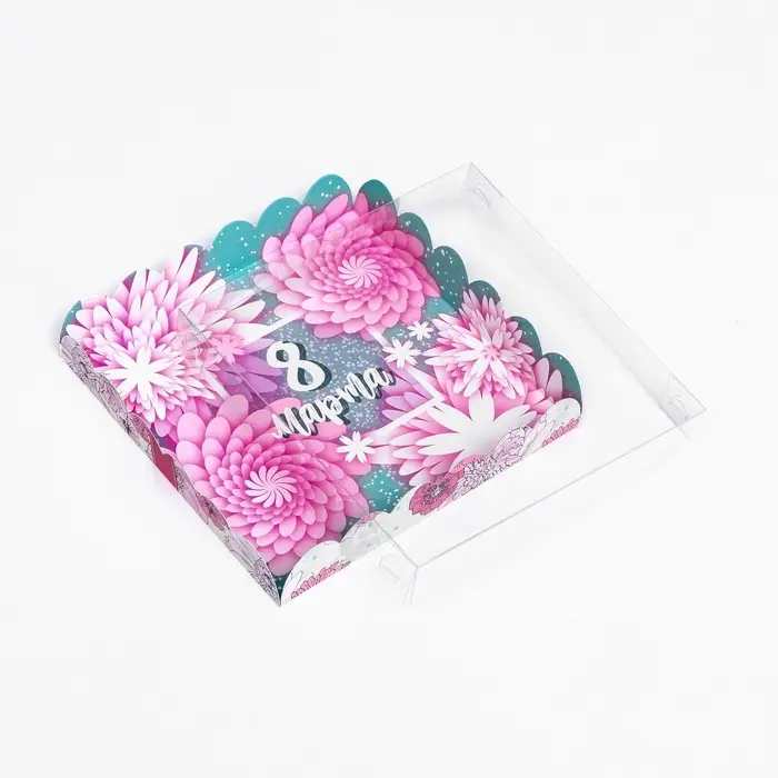 Коробка для печенья, кондитерская упаковка с PVC крышкой, «8 марта», 21 х 21 х 3 см