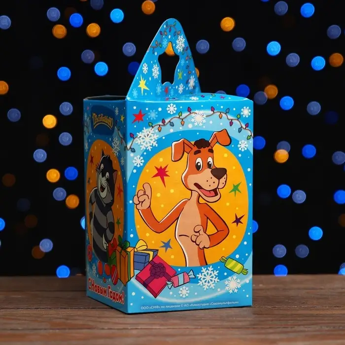 Коробка новогодняя подарочная складная «Простоквашино» 11×11×17.2 см