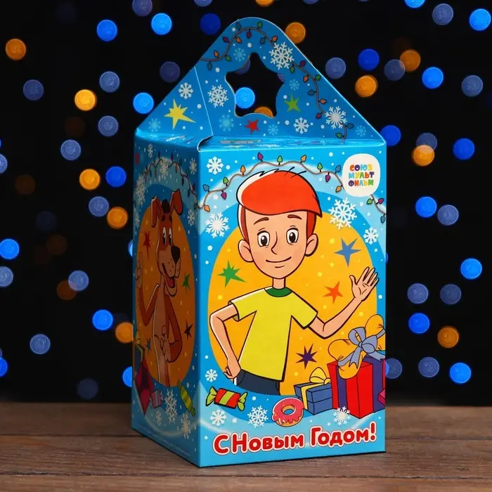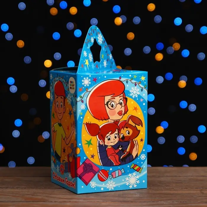Коробка выполнена из качественных материалов, которые обеспечивают сохранность содержимого. Она имеет яркий и красочный дизайн, который отражает атмосферу Нового года.