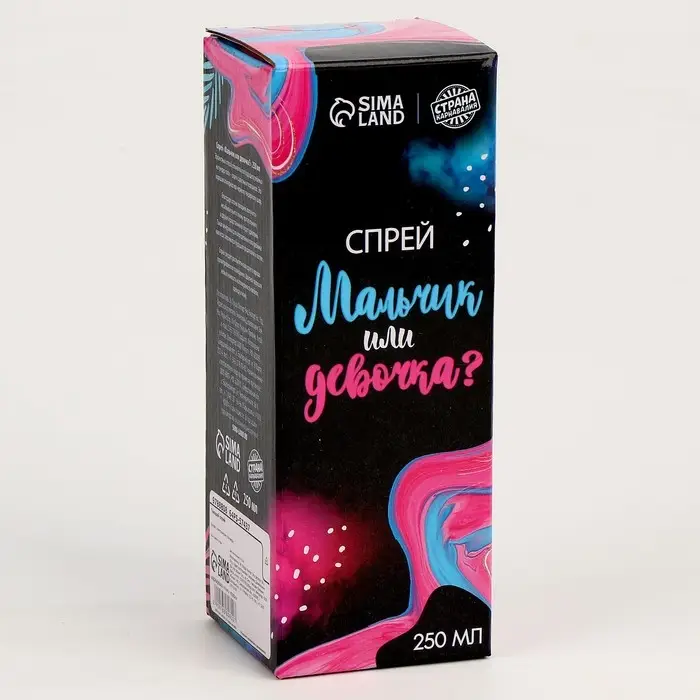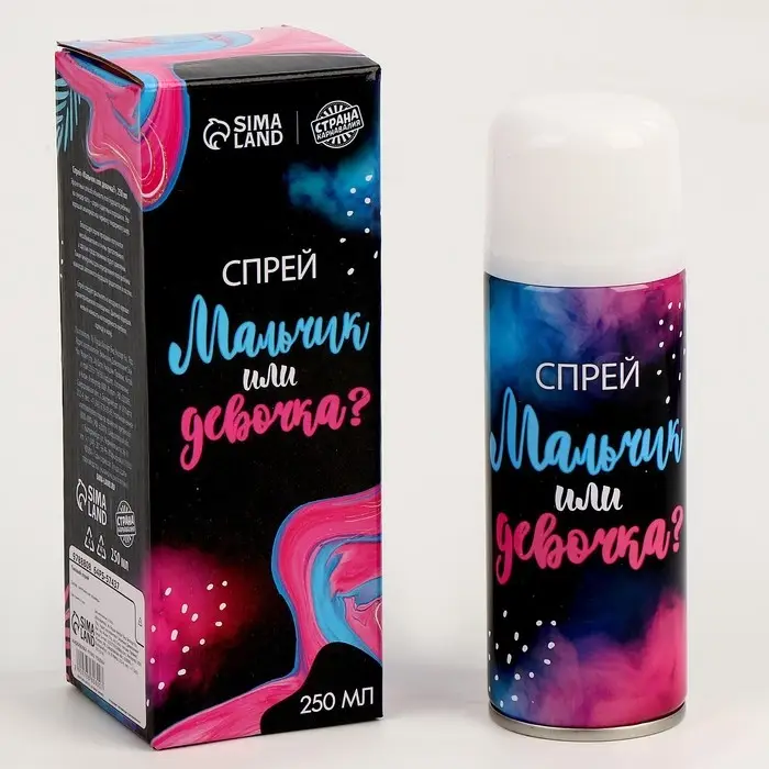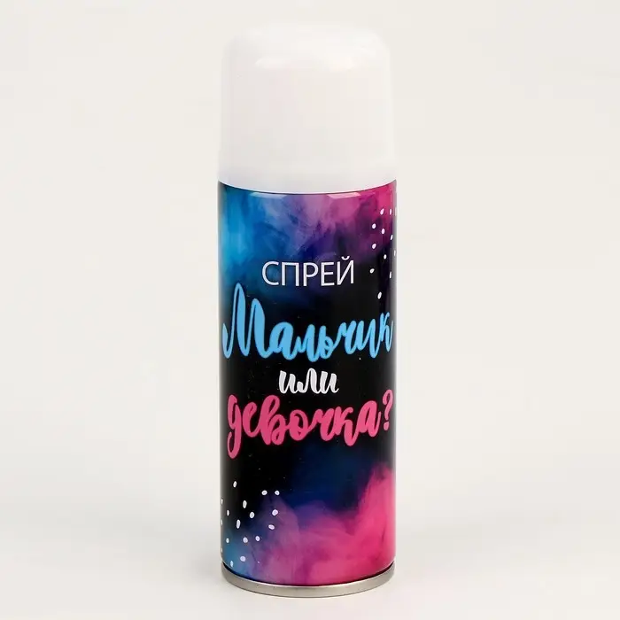 Тающий спрей поможет в организации самого яркого и незабываемого праздника. Достаточно распылить спрей и по цвету наполнителя Вы узнаете пол будущего ребёнка! А чтобы убедиться, что вам пришел верный цвет, на баллончике есть обозначение снизу: 1 - девочка; 2 – мальчик. Спрей является безопасным для использования в любом помещении или на улице.