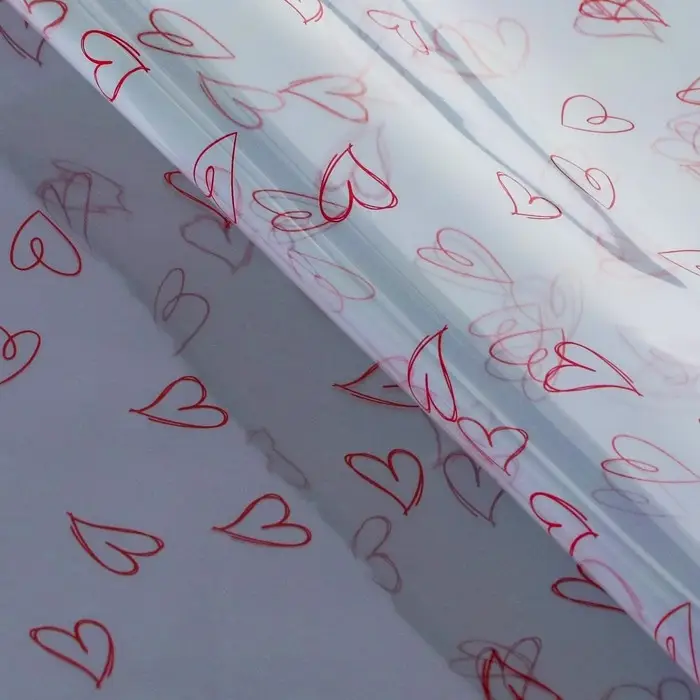 Плёнка для цветов упаковочная глянцевая прозрачная «Сердца», красные, 0.6 x 10 м