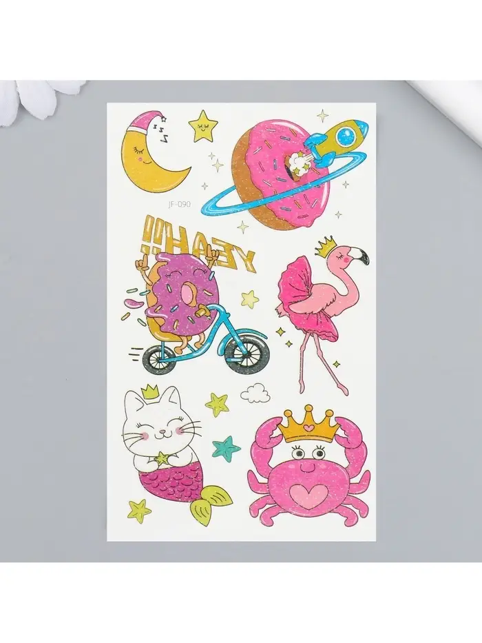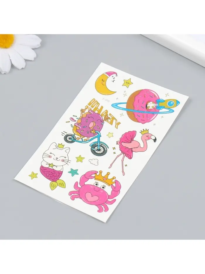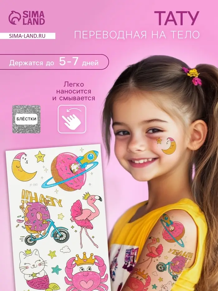 Переводные тату на тело цветные «Розовые мечты», блёстки, 12×7.5 см