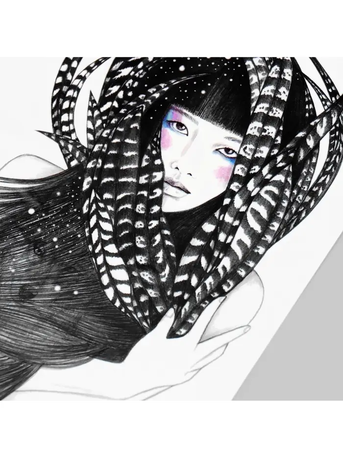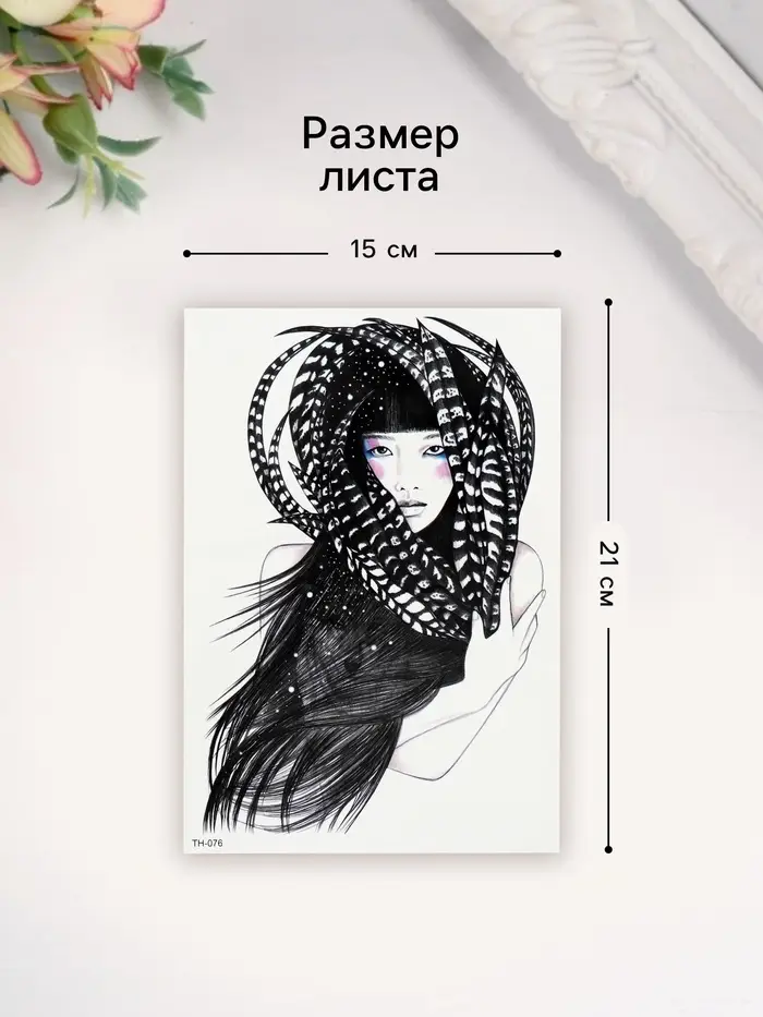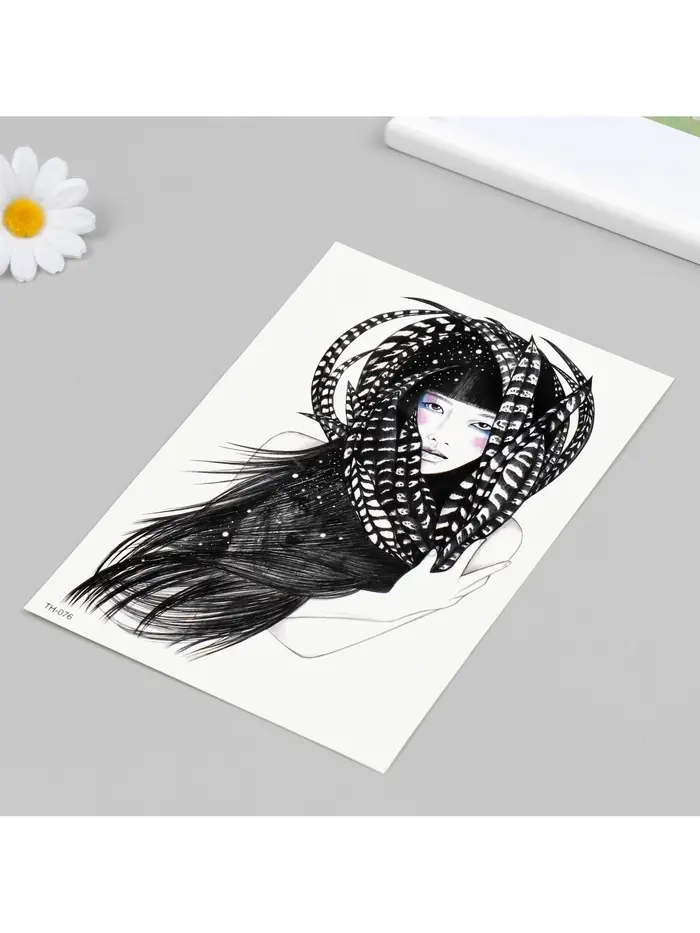 Переводная тату на тело цветная «Девушка в перьях», 21×14.8 см