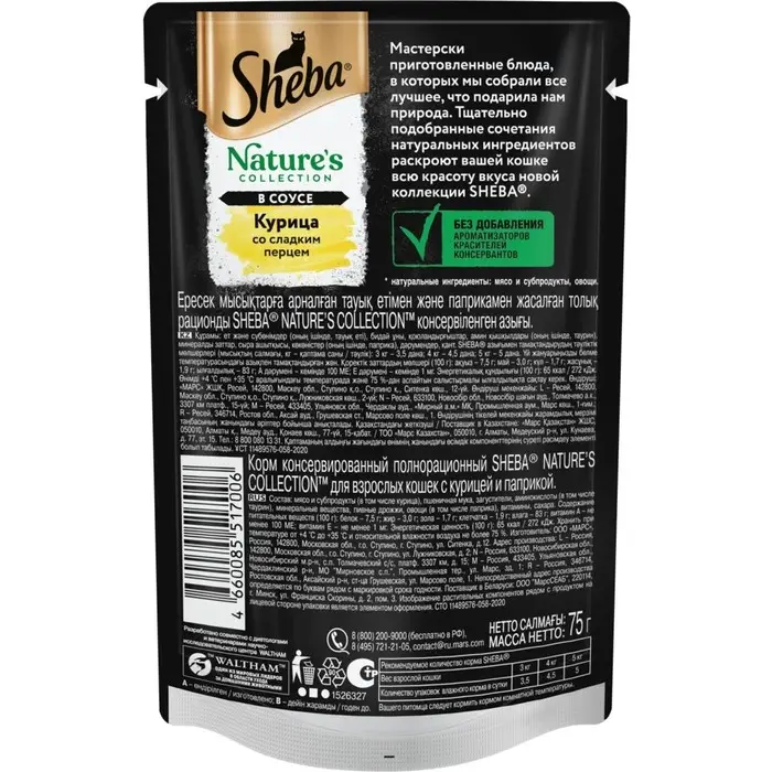 Влажный корм Sheba для кошек, пауч, курица/паприка, 75 г