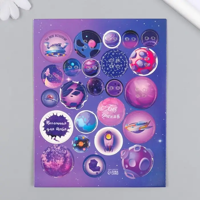 Декоративные элементы для творчества «Арт Узор. Фишки и пуговки. Фиолетовый», набор 24 шт., картон, 13×16.5 см