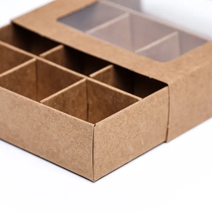 Коробка для 9 конфет 8.7×8.7×2.5 см, Тонкие разделители, крафт