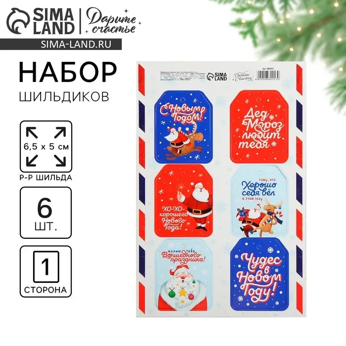 Шильдик на подарок «Дед Мороз любит тебя», набор 6 штук, 16×24 см