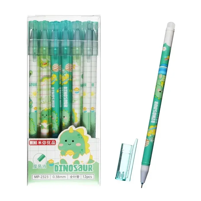 Ручка гелевая со стираемыми чернилами, стержень синий, 0.38 мм, корпус "Дино", МИКС