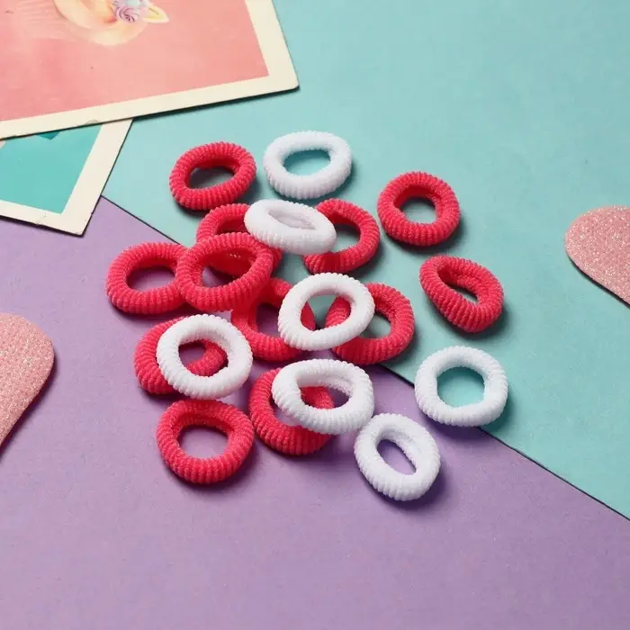 Резинка для волос "Махрушка спорт" (набор 100 шт) 1,5 см, розовый-белый
