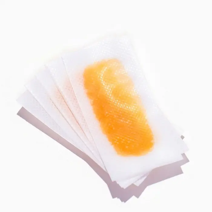 - Разъедините склеенные между собой полоски и наклейте их на кожу, разглаживая по направлению роста волос.