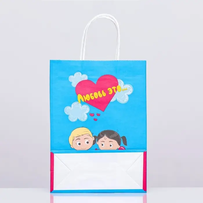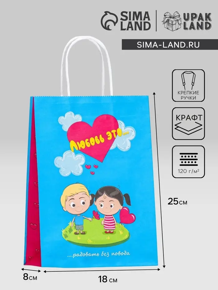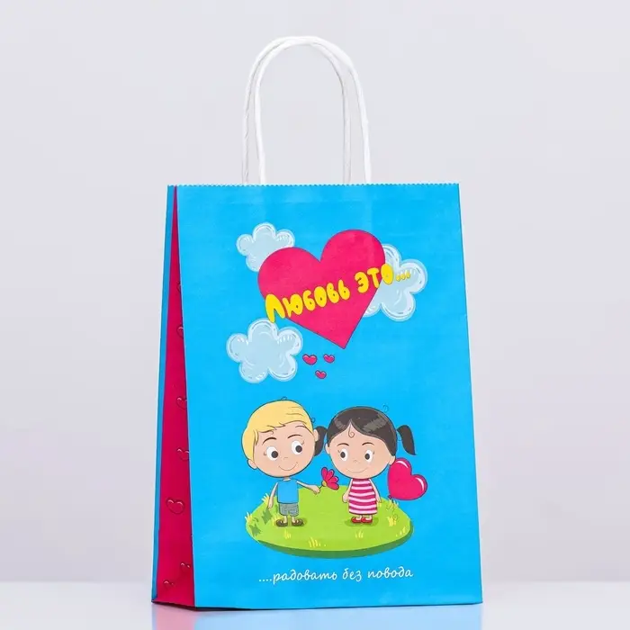 Пакет крафт "Любовь это...", синий, 18×8×25 см