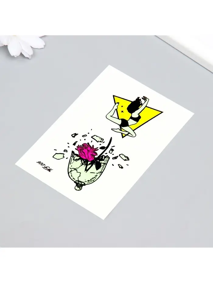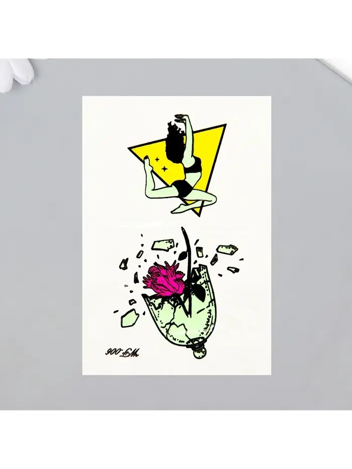 Создайте неповторимый стиль с уникальными светящимися дизайнерскими татуировками! Фосфорные переводки «Девушка и роза в осколках» – это креативное решение для выразительного аксессуара, которое подчеркнет вашу индивидуальность и станет ярким акцентом на любом празднике.
