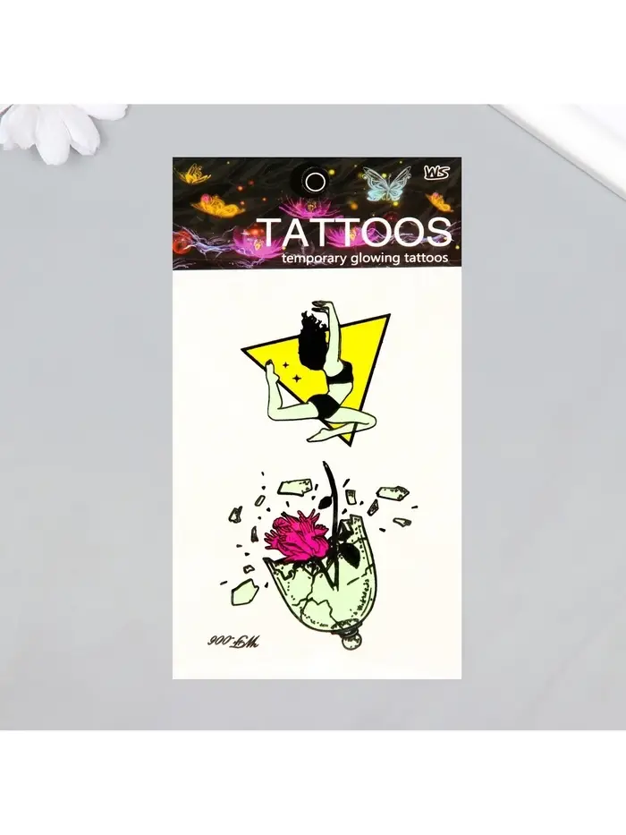- Светящиеся элементы: Эти временные татуировки оживают ночью, сияя в темноте и добавляя загадочности вашему образу. Они идеально подходят для вечеринок и мероприятий.