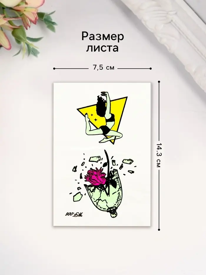 - Универсальное применение: Благодаря своей форме и размеру (14.3×7.5 см), татуировки можно размещать на любом участке тела. Они подходят как девушкам, так и женщинам, превращая любой день в праздник.
