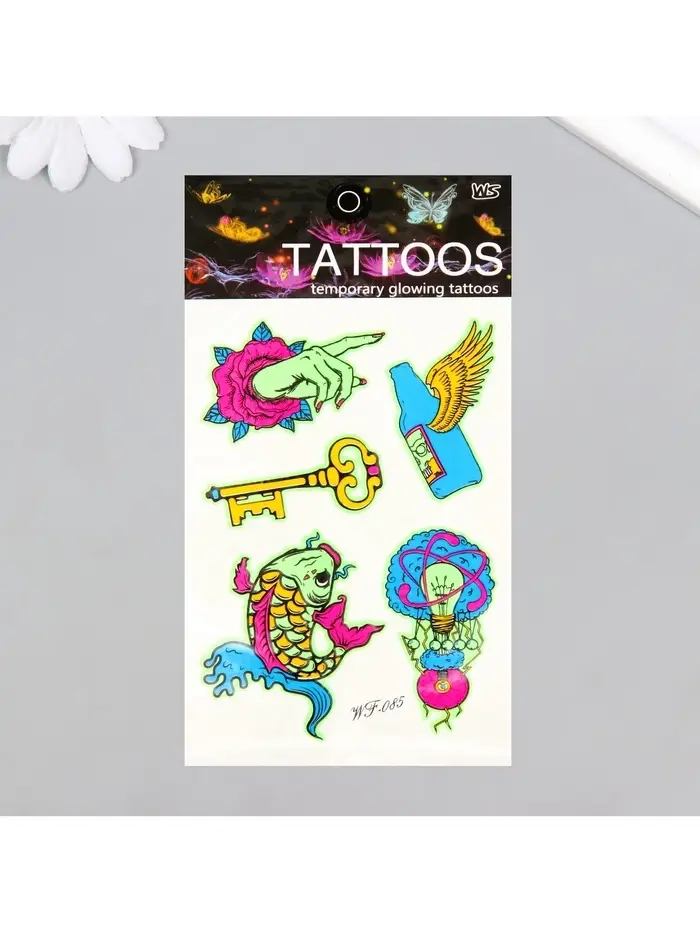 - Яркие в темноте: Эти татуировки светятся в темноте, создавая эффект магии и сюрприза. Добавьте немного волшебства в свой вечерний образ, создав уникальный светящийся акцент.