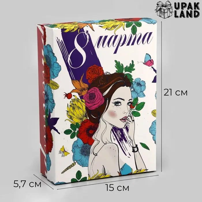 Подарочная складная коробка, упаковка, «Девушка в весенних цветах» 21×15×5.7 см