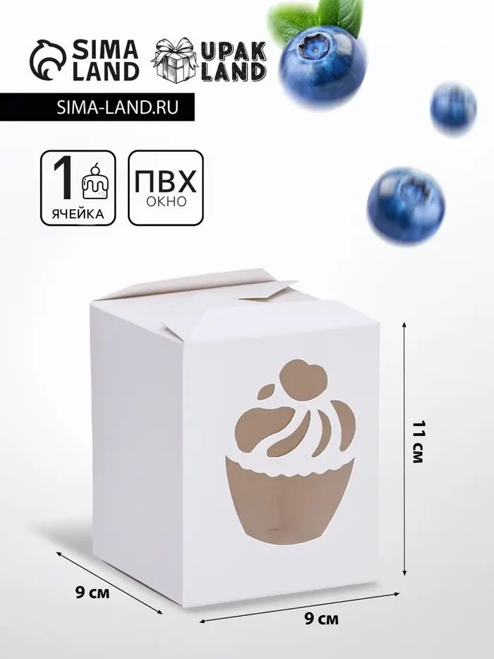 Коробка под пирожное, белая, 9×9×11 см
