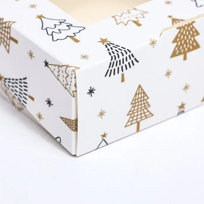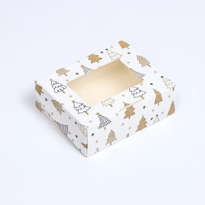 Коробка подарочная новогодняя складная «Золотые ёлки», 10×8×3.5 см
