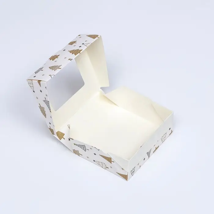 Внутренняя поверхность коробки покрыта тонкой защитной плёнкой, которая эффективно предотвращает раскисание материала. Это гарантирует, что ваши кондитерские изделия останутся свежими и вкусными, как только их упаковали.
