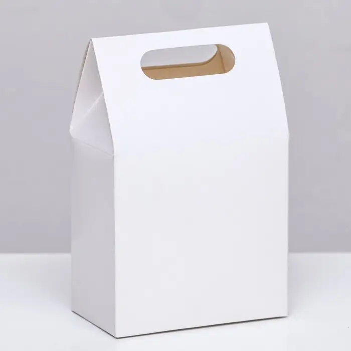 Наличие прочных ручек делает коробку-пакет легкой в переноске и придает упаковке дополнительное удобство.