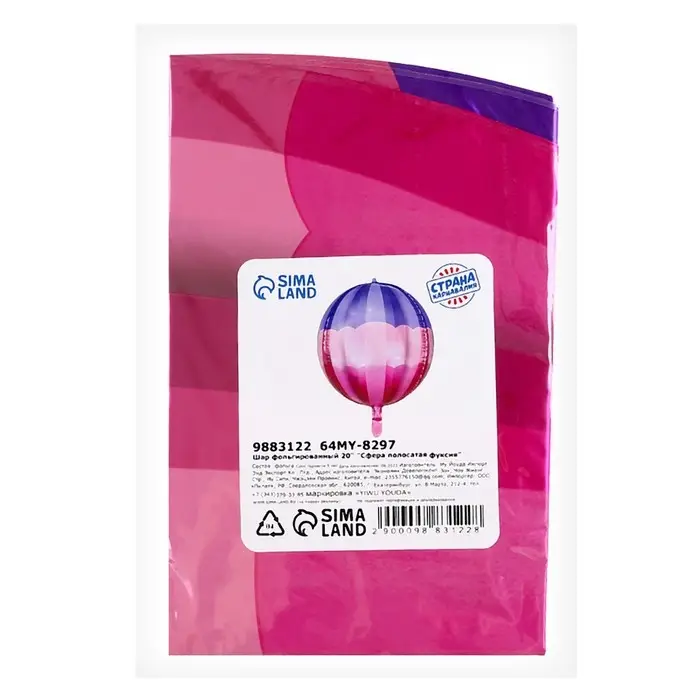 Воздушный шар фольгированный 20" «Сфера полосатая», фуксия