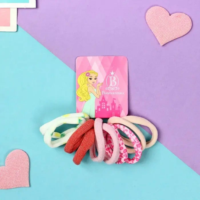 Резинка для волос "Синди" (набор 10 шт) сердца блеск, 4 см