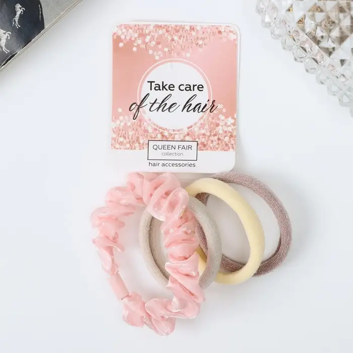 Резинка для волос "Аделин" (набор 4 шт) пастель, 4 см