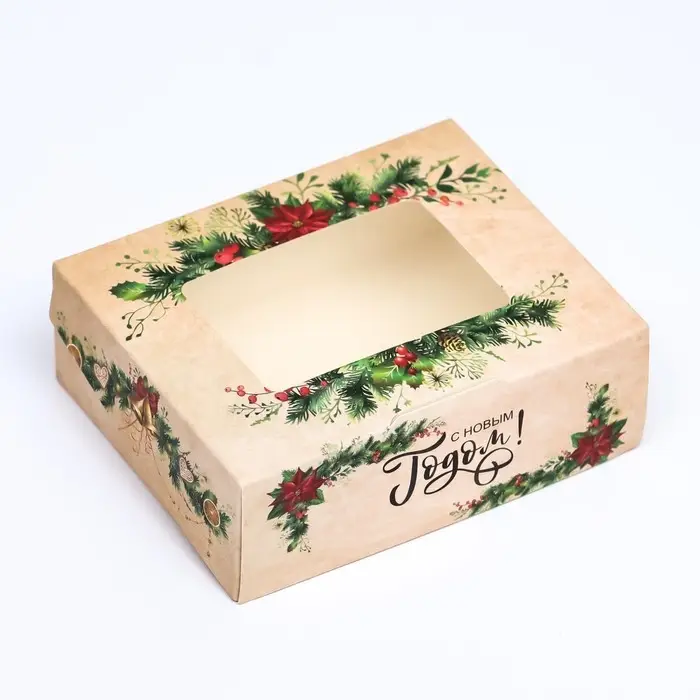 Коробка складная, крышка-дно, "Present", 21 х 15 х 7 см с окном