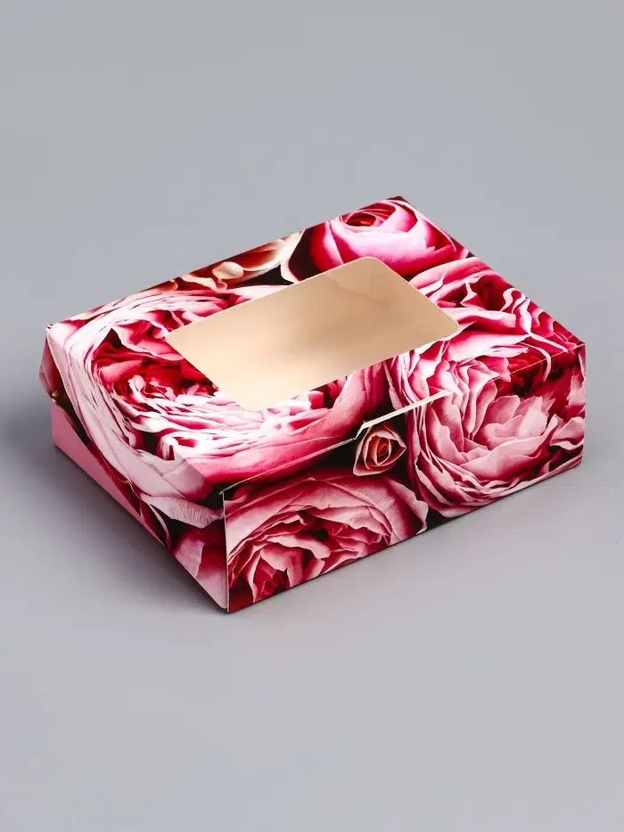 Коробка складная с окном «Розы» 10×8×3.5 см