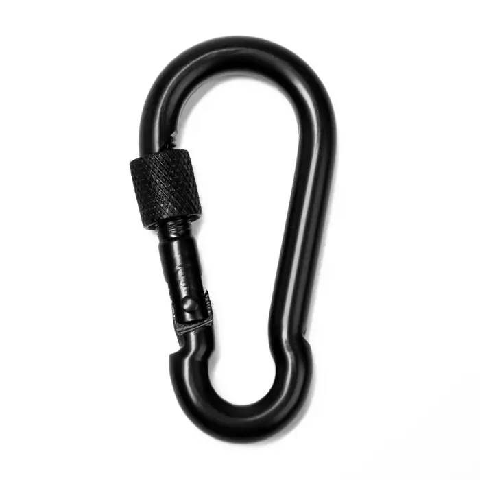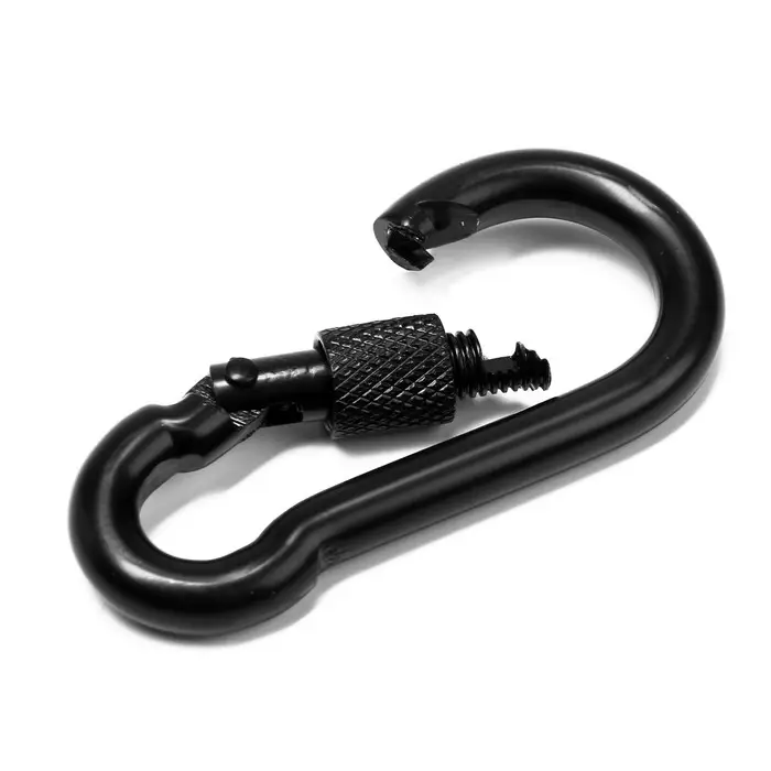 Карабин монтажный с фиксатором ТУНДРА krep, DIN5299D, 7×70 мм, черный, 1 шт.