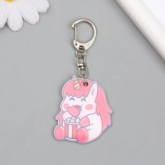 Брелок акрил "Единорожка и попкорн" 4,3х3,7 см
