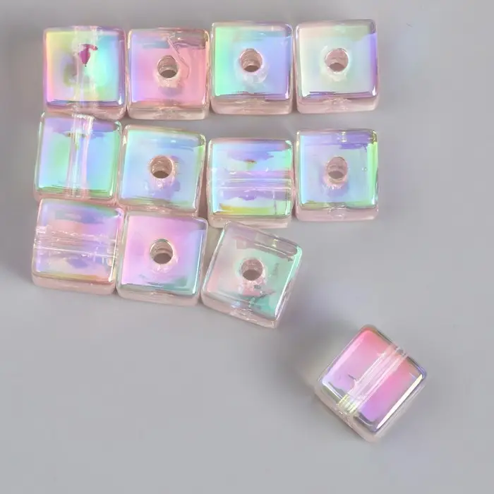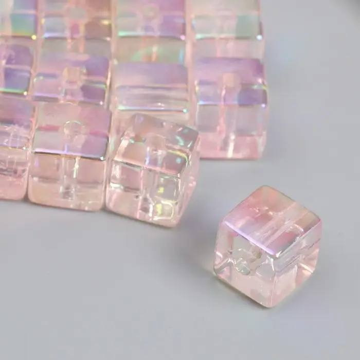 Бусина для творчества пластик "Кубик. Прозрачный перламутр" розовый 1,4х1,4х1,4 см