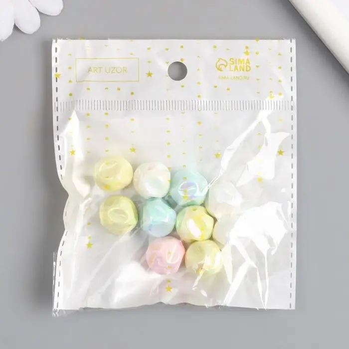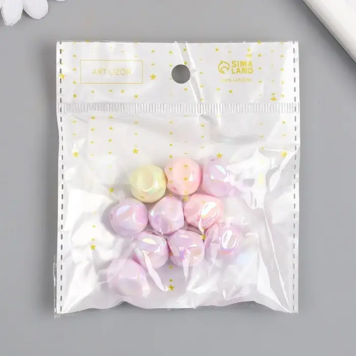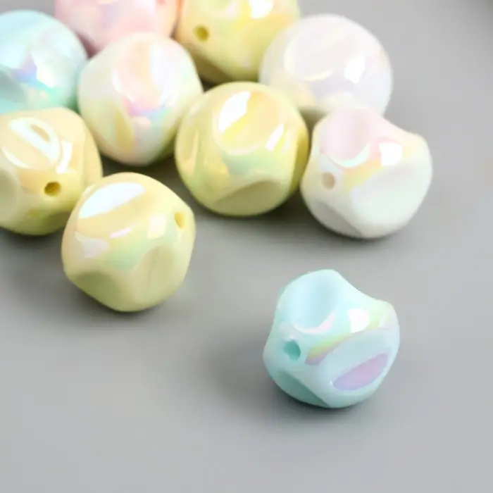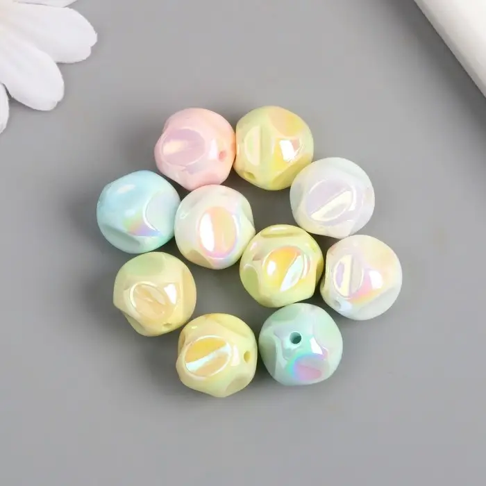 Бусина для творчества пластик "Мятый шарик" МИКС перламутр нежных цветов 1,5х1,5х1,5 см
