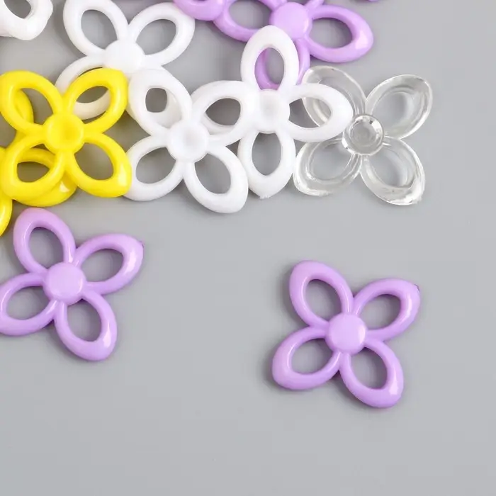 Декор для творчества "Цветок. Жёлтый, фиолет, белый и прозрачный" н-р 20 гр 2,8х2,8х0,4 см