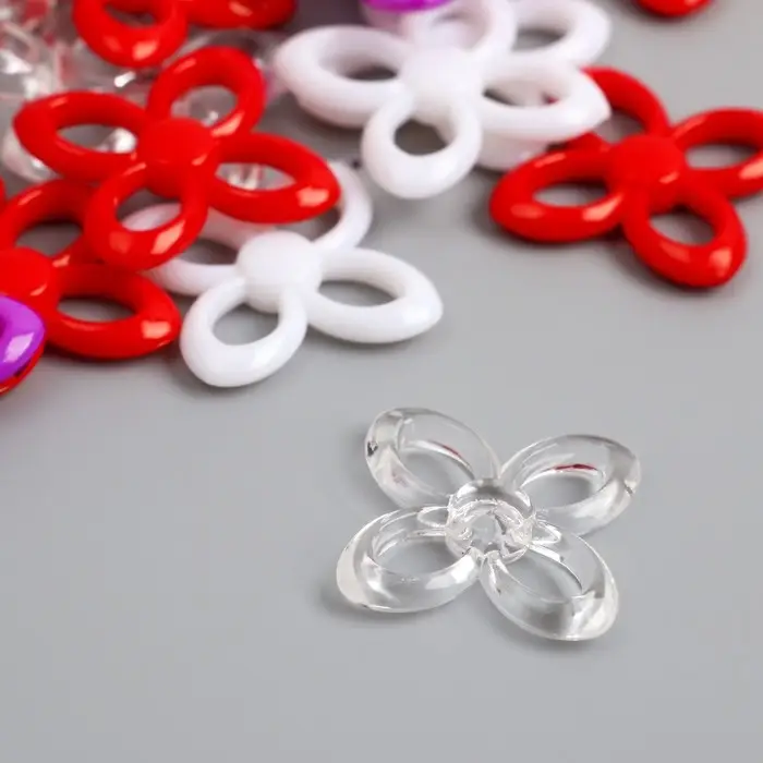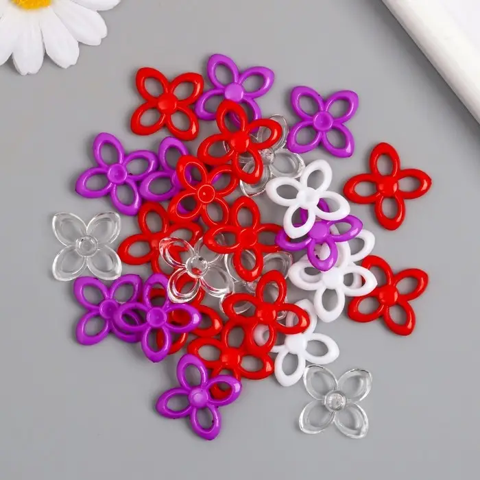 Декор для творчества "Цветок. Красный, фиолет, белый и прозрачный" н-р 20 гр 2,8х2,8х0,4 см 992805
