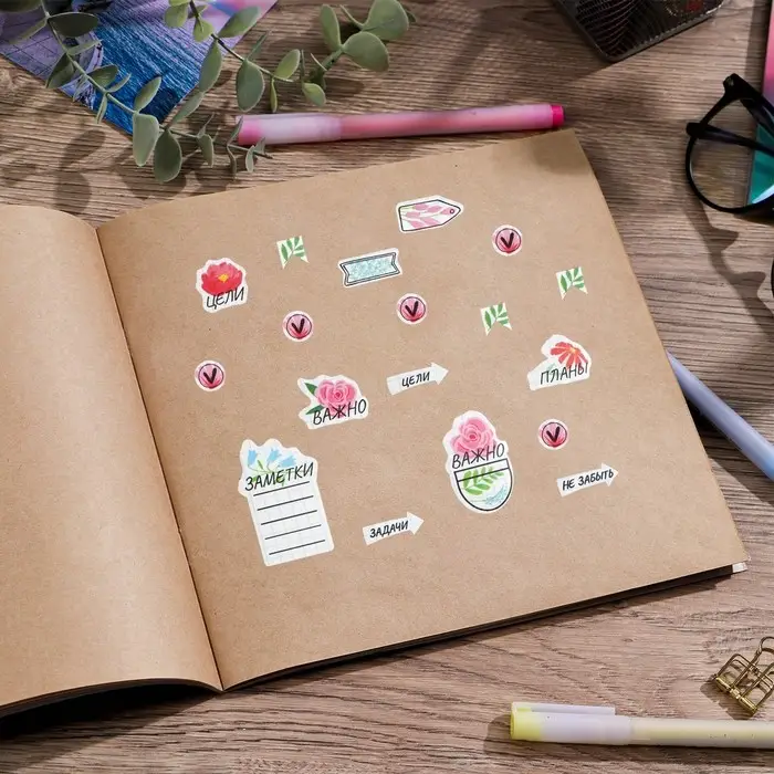 Наклейки бумажные на подложке «Тетрадь», для ежедневника 6×21 см