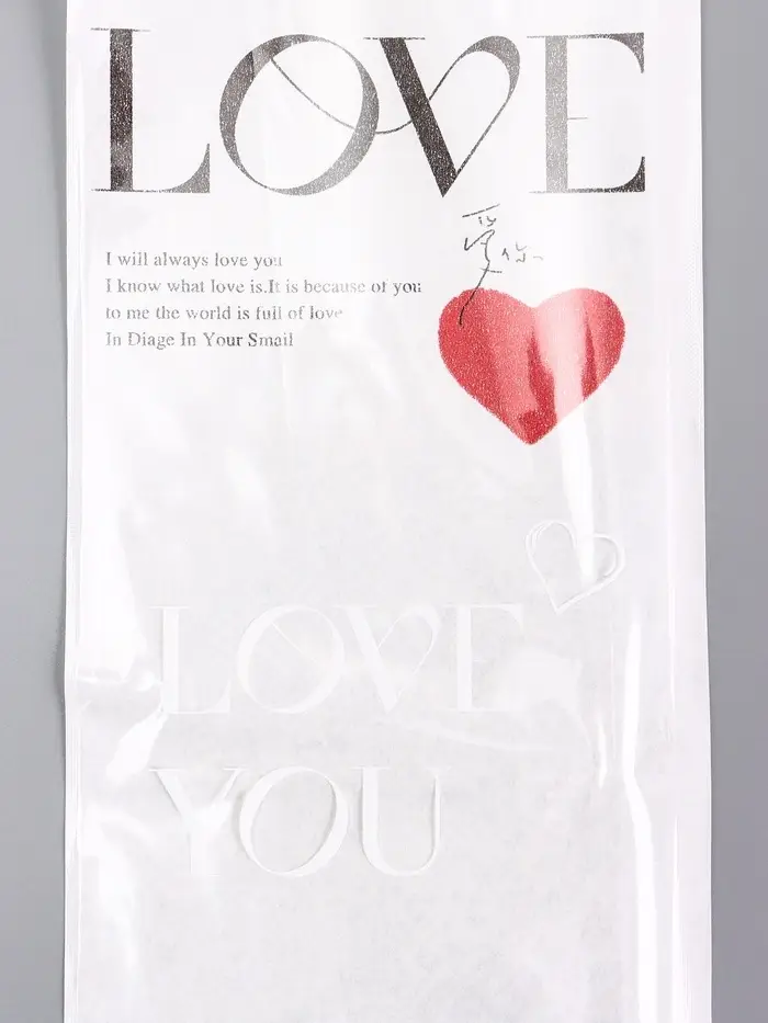 Романтичная упаковка для особенных моментов! Белый конус с рисунком 14×40 см — стильное решение для небольших цветочных композиций. Трогательные сердечки и надписи создают праздничное настроение.