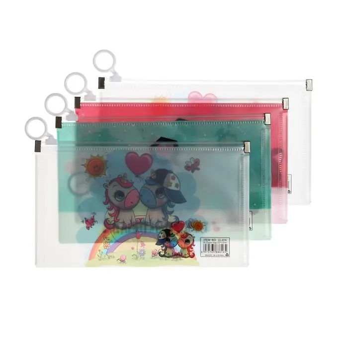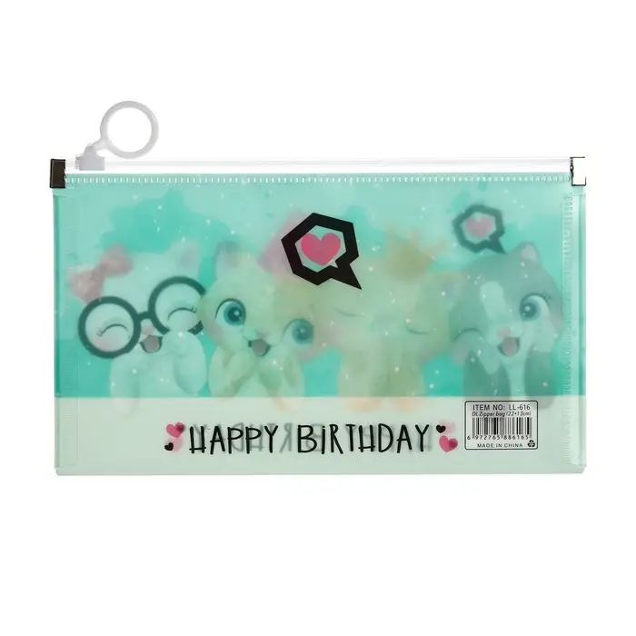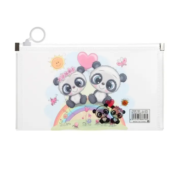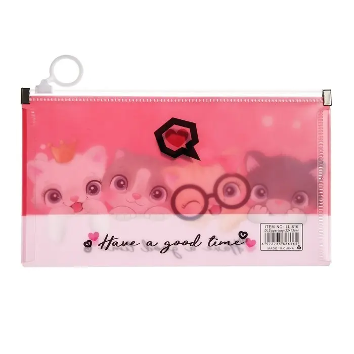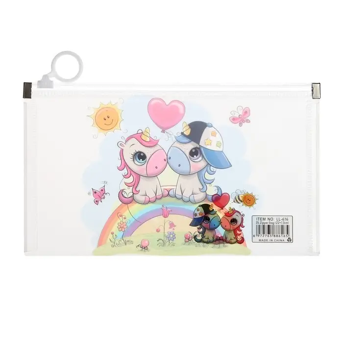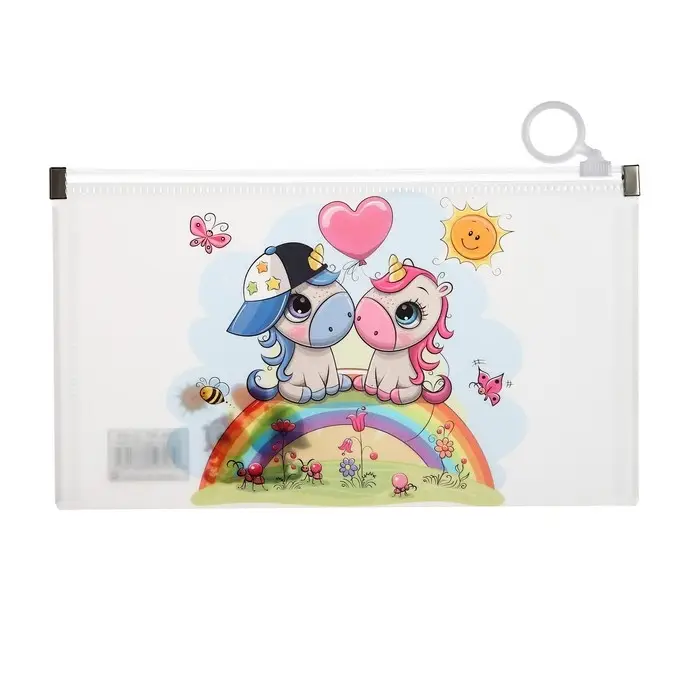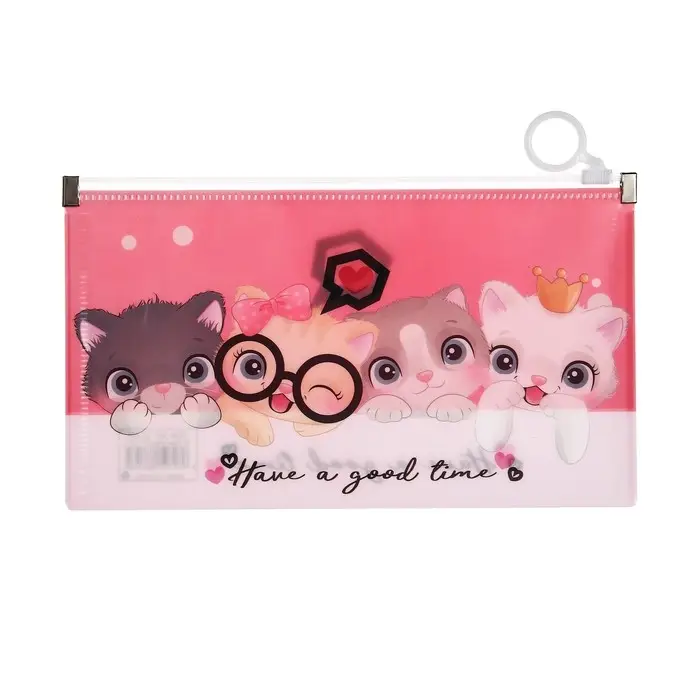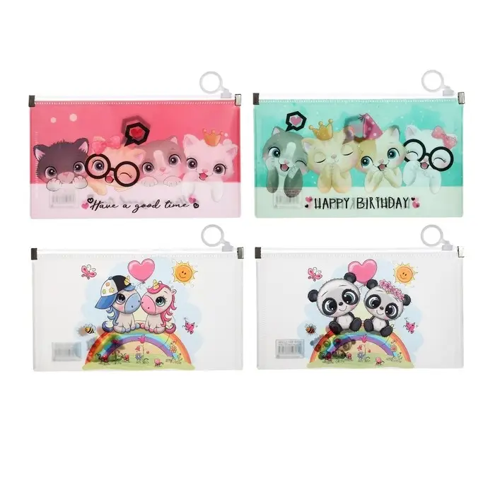 Папка-конверт на молнии формат А65, 180 мкр "Котики, Панды, Единороги", МИКС