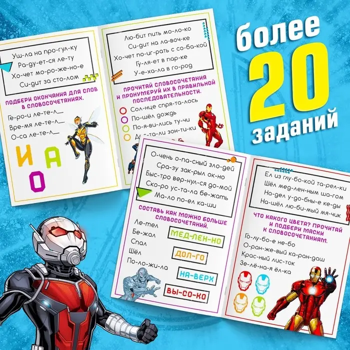 Обучающая книга «Учимся читать. Словосочетаниря и предложения» — это полезное пособие для детей от 3 лет, вдохновлённое любимыми героями «Мстителей». Формат А5 и мягкий переплёт делают её удобной для использования дома или в дороге. Этот набор особенно понравится мальчикам, интересующимся супергероями и обучением.
