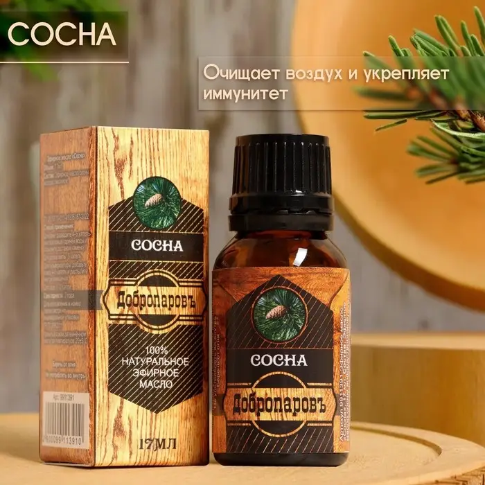 Эфирное масло сосны имеет согревающее, противовоспалительное и антибактериальное действие и тонизирующий аромат. Применяется при лечении заболеваний мочеполовой и дыхательной системы, при уходе за кожей и волосами, а также повышает иммунитет.