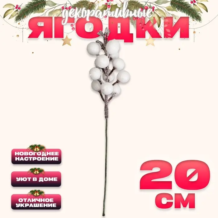 Ягоды для декора, белого цвета, 4,5 × 4,5 × 20 см