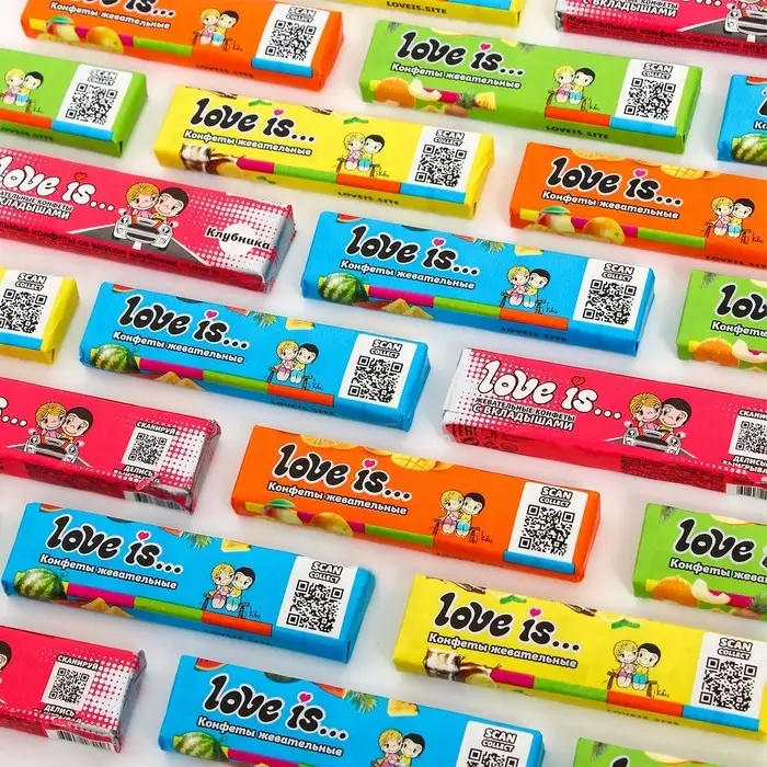 Жевательные резинки Love Is в далёких 90-х пользовались небывалой популярностью как у детей, так и у взрослых. Благодаря яркому вкусу и оригинальным вкладышам, жвачки Лав Ис завоевали любовь миллионов людей. Картинки-вкладыши, которые прилагались к каждой жевательной резинке с мальчиком и девочкой - стали легендами и известны по сей день.