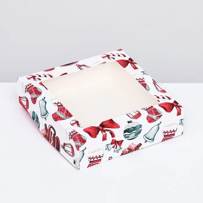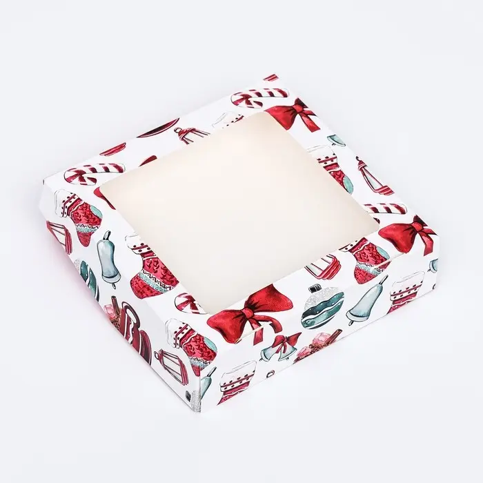 Коробка подарочная новогодняя складная с окном "Подарок", 15 х 15 х 4 см.