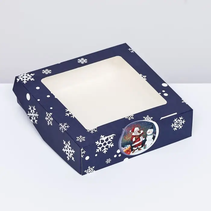 Коробка подарочная новогодняя складная с окном «Метель», 15×15×4 см
