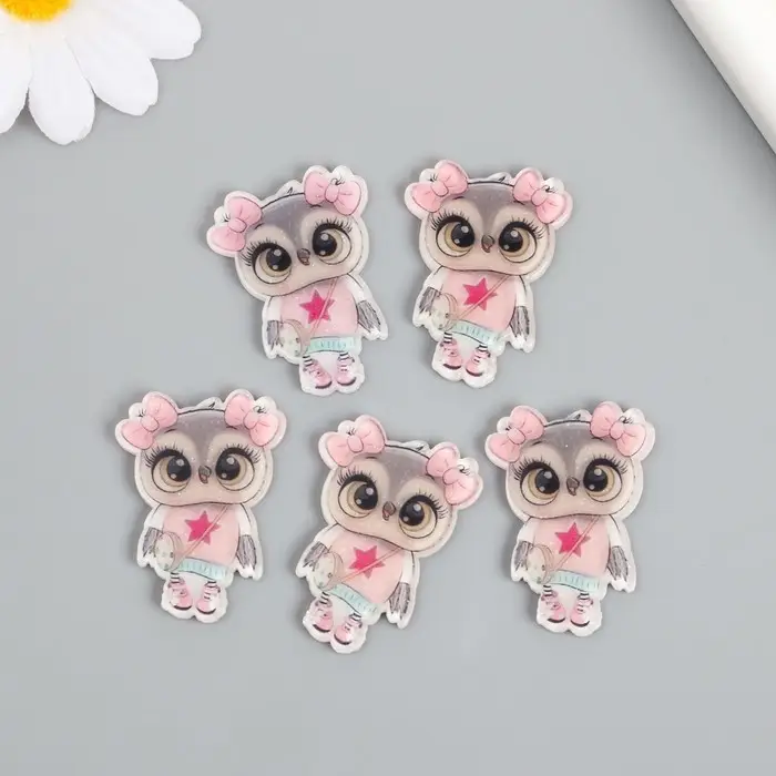 Декор для творчества акрил "Совушка в розовом свитере с сумкой" 2,7х3,7 см