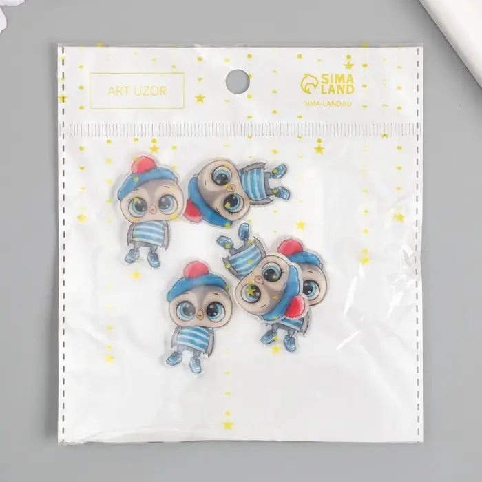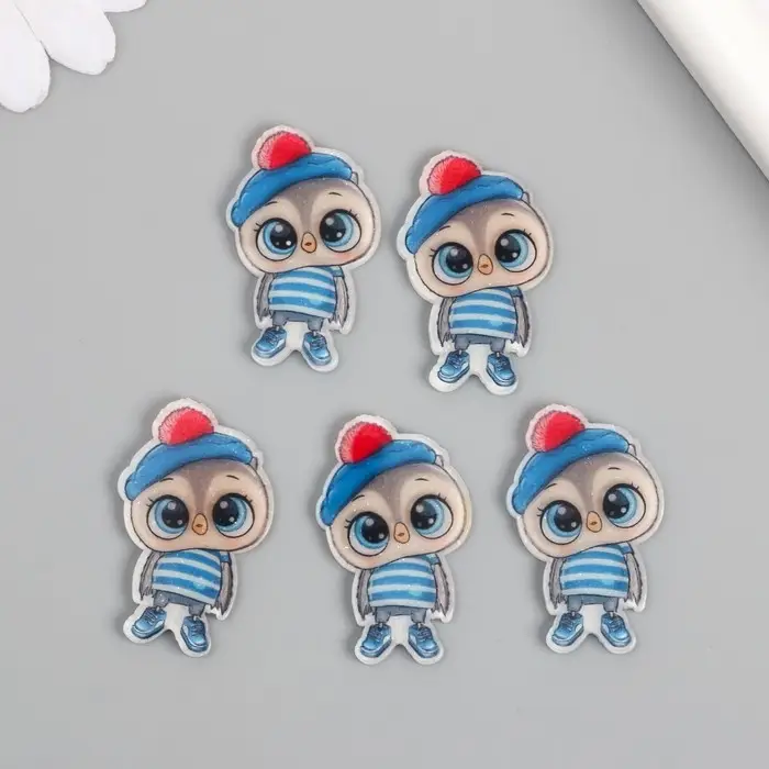 Декор для творчества акрил "Совёнок в полосатой майке и берете" 2,4х3,7 см
