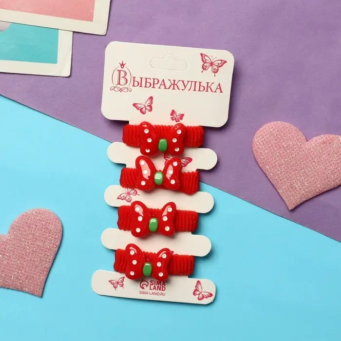 Резинка для волос "Лоррет" (набор 4 шт) бантик горох, красный